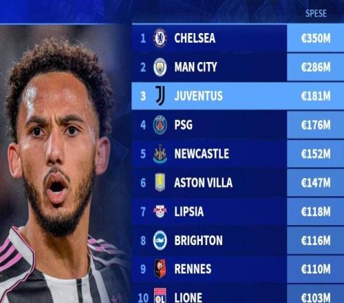 德轉(zhuǎn)列過去5年冬窗引援支出排名:切爾西、曼城、尤文前三