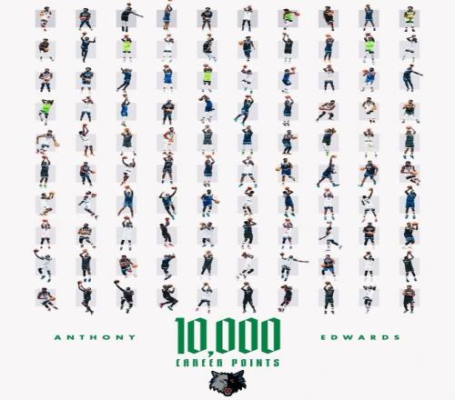 第四,愛德華茲也因此成為了NBA歷史上第7位在年滿25歲之前拿到10000分的球員,其余六人是:科比、麥迪、詹姆斯、安東尼、杜蘭特和東契奇。