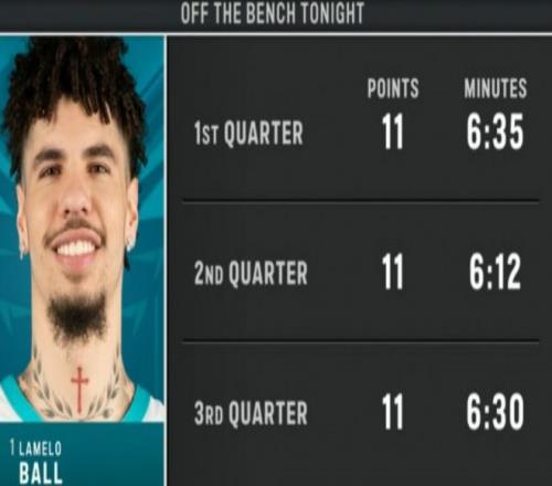 有意思的是,鮑爾前三節(jié)各出戰(zhàn)6+分鐘,并且每一節(jié)都砍下11分。
