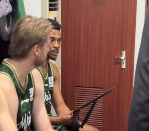 在頒獎的時候,王世龍將投手給到漢茲,確實這場他砍下了32分,他在進攻端就是摧毀性的表現(xiàn),而且串聯(lián)效果也不錯,能帶動全隊。當然因為第一次領獎,漢茲還是比較懵逼的,畢竟他沒有經(jīng)歷過,還在詢問隊友什么情況。