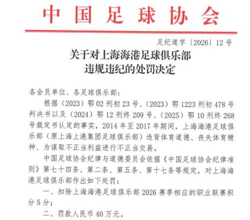 其中來自上海灘的兩支球隊(duì),上海海港被扣了5分,申花則是頂格罰了10分。這樣的處罰背后,依據(jù)是什么?是否公平呢?