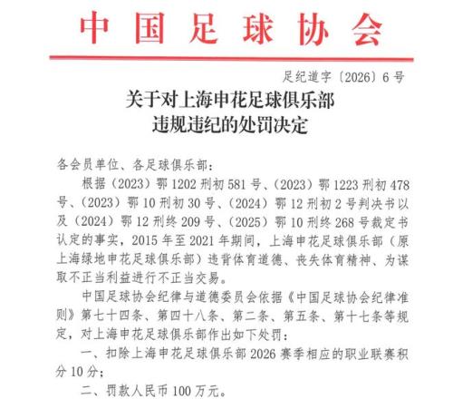 在新一年第一個(gè)月的最后幾天,中國足壇發(fā)生了一件大事。16支中超球隊(duì)里有9個(gè)被罰分,最多的10分,最少的5分,讓接下去的2026賽季中超聯(lián)賽冠軍爭奪,變得有些微妙。