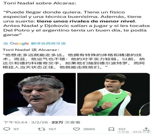 托尼叔叔的這番發(fā)言迅速引發(fā)了網(wǎng)球圈內(nèi)外的廣泛討論。