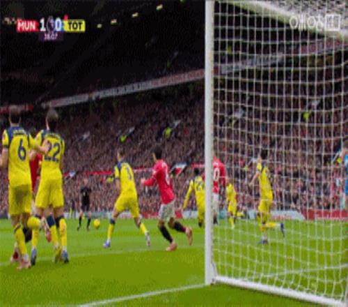 曼聯(lián)面對少打一人的熱刺,幾分鐘內(nèi)就打破比分僵局,主要靠一個充滿創(chuàng)意的角球配合。高中衛(wèi)馬奎爾在禁區(qū)內(nèi)搶鏡,作勢要搶點吸引盯防,結(jié)果隊長布魯諾·費爾南德斯卻把皮球傳給跑到禁區(qū)邊緣接應(yīng)的科比·梅諾,后者回敲到弧頂位置,無人防守的姆貝莫巧射球門右下角入網(wǎng)。