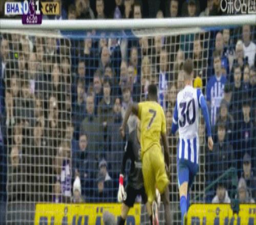 第62分鐘,薩爾冷靜推射破門,水晶宮1-0布萊頓
