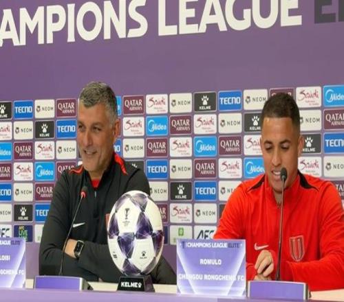 2月9日下午,成都蓉城與武里南聯(lián)的賽前新聞發(fā)布會(huì),主教練約翰-阿洛伊西和球員羅慕洛出席。