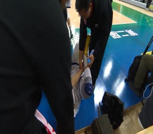 孫銘徽在首節(jié)開局連得5分,但僅登場(chǎng)4分22秒,就在突破過(guò)程中不慎崴腳,隨后痛苦倒地抱著自己受傷的部位。孫銘徽起身后無(wú)法自行走路,無(wú)奈被背出賽場(chǎng),也是提前退賽,成為廣廈崩盤輸球無(wú)緣CBA俱樂部杯決賽的重要因素之一。