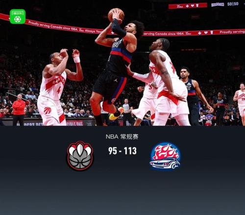 第四節(jié)猛龍英格拉姆拿下5分,活塞赫爾特拿下7分,最終猛龍95-113不敵活塞