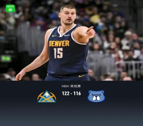 第四節(jié)掘金約基奇拿下7分,灰熊杰洛姆拿下5分,最終掘金122-116戰(zhàn)勝灰熊
