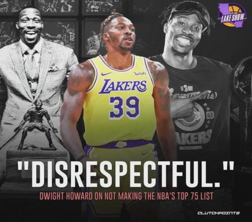 作為曾經(jīng)的NBA第一中鋒,霍華德也算榮譽滿身,20年跟隨湖人奪冠,3次DPOY,8次最佳陣容,5次最佳防守陣容,5次籃板王,2次蓋帽王,8次全明星,1枚奧運會金牌等等,可能唯一遺憾的就是落選75大巨星。